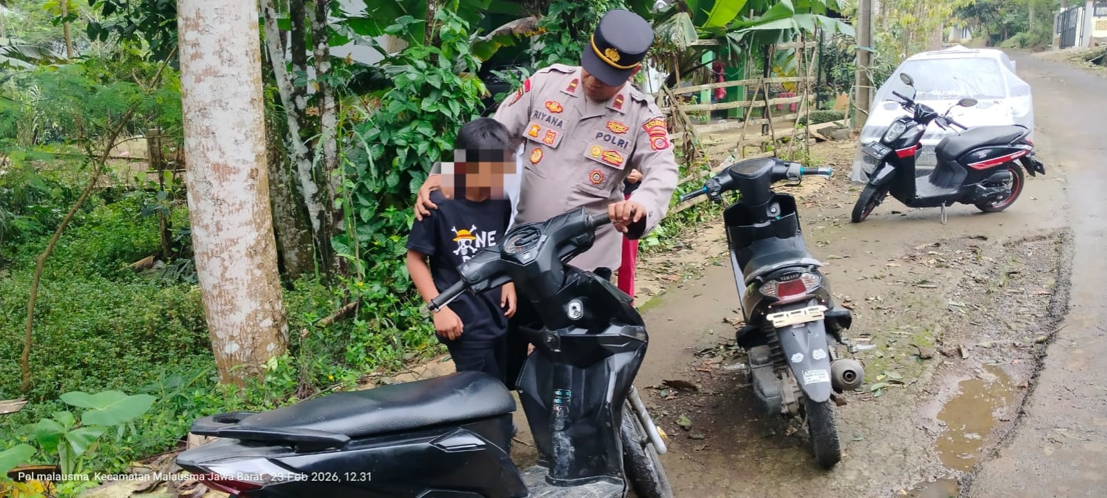 Majalengka, Kapolsek Malausma Polres Majalengka IPDA Riyana memberikan teguran kepada pengendara anak dibawah umur yang kedapatan menggunakan kendaraan bermotor saat melakukan Patroli di siang hari di jalan raya Desa Banyusari Kecamatan Malausma Kabupaten Majalengka, Rabu (25/2/2026).