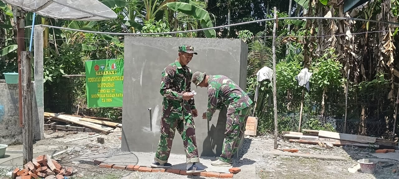 Reformasiaktual.com//Nagan Raya – Pembuatan bak penampungan air yang menjadi salah satu program sasaran fisik TMMD ke-127 Kodim 0116 Nagan Raya yang di buat 5 titik oleh Satgas Kodim 0116 Nagan Raya di haeri ke 16 sebagian besar memasuki tahap akhir dan di sasaran titik 1 Terlihat anggota Satgas TMMD tengah melakukan finishing pada bagian dinding bak untuk memastikan hasil yang rapi dan kokoh. Proses finishing ini dilakukan guna memperkuat struktur bak agar lebih tahan lama dan mencegah kebocoran. Rabu (25/02/2026).