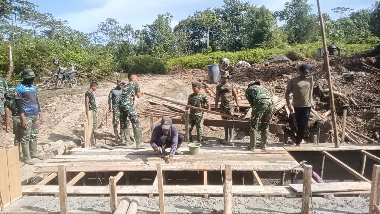 Di Desa Ujong Blang, Kecamatan Beutong, kebersamaan antara anggota TNI dan warga tampak seperti keluarga yang saling mendukung. Mereka bekerja bersama dalam pembangunan jalan sepanjang 3.100 meter menuju Desa Pante Ara, pembangunan fasilitas MCK, penyediaan air bersih, pembangunan box culvert, serta perehaban rumah tidak layak huni.
