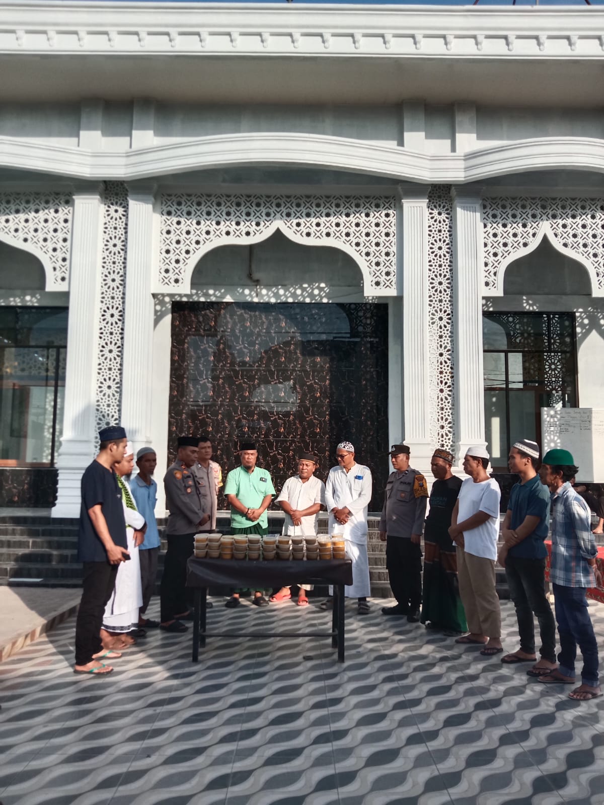 “Kami ingin hadir di tengah masyarakat tidak hanya sebagai pelindung dan pengayom, tetapi juga sebagai saudara yang saling berbagi. Sebanyak 100 paket berisi bubur dan mie goreng kami salurkan dengan harapan dapat membantu para jamaah dan pengurus masjid untuk berbuka puasa,” ujar AKBP Welman Feri.
