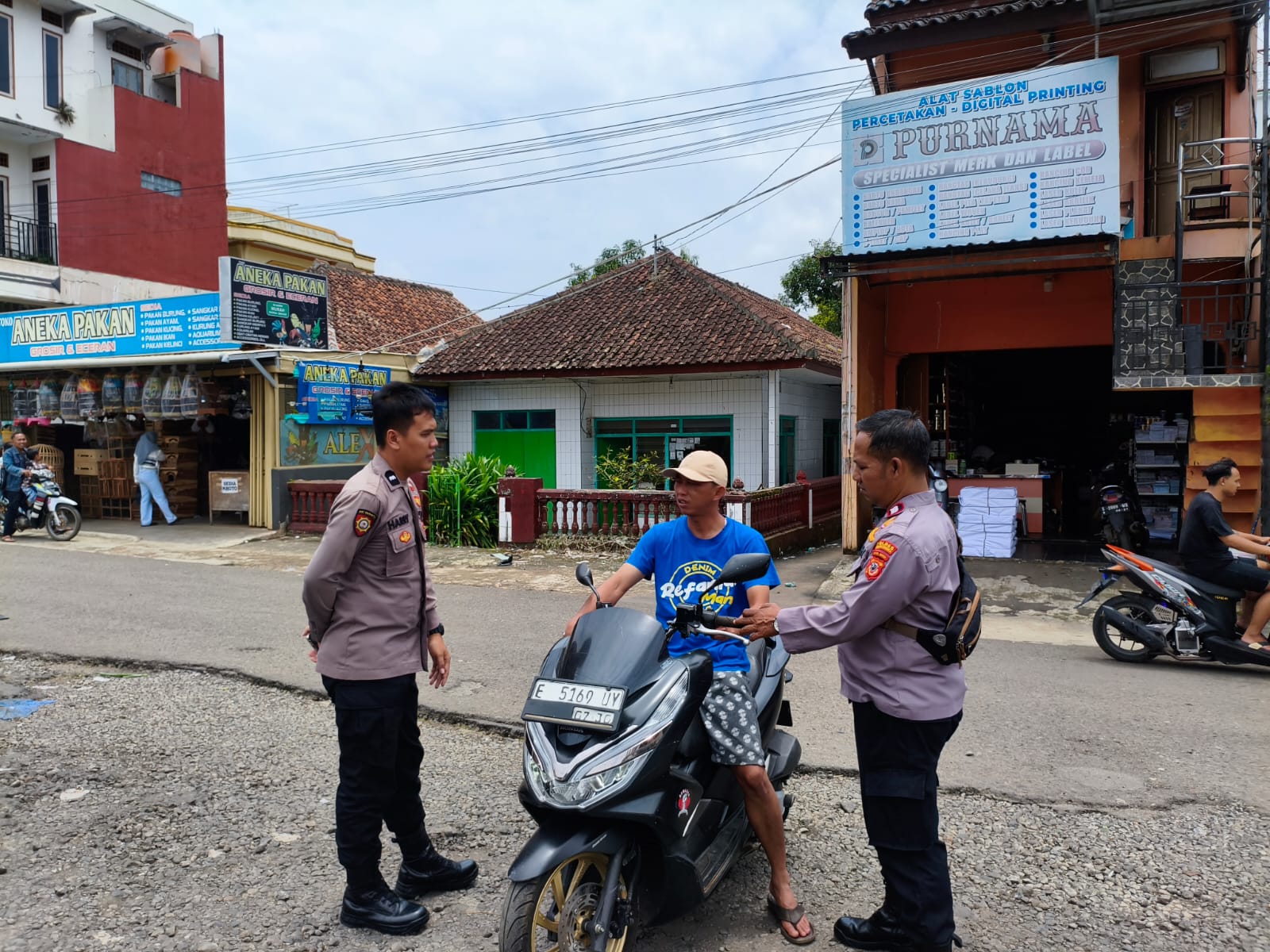 Majalengka – Ps. Panit Samapta I Polsek Cikijing Polres Majalengka Polda Jabar, Aiptu Eman Subagja bersama Bhabinkamtibmas Aipda Harry melaksanakan patroli dan menyapa warga di Desa Cikijing, Kecamatan Cikijing, Kabupaten Majalengka guna antisipasi gangguan kamtibmas di wilayah hukum Polsek Cikijing, Selasa (03/03/2026).