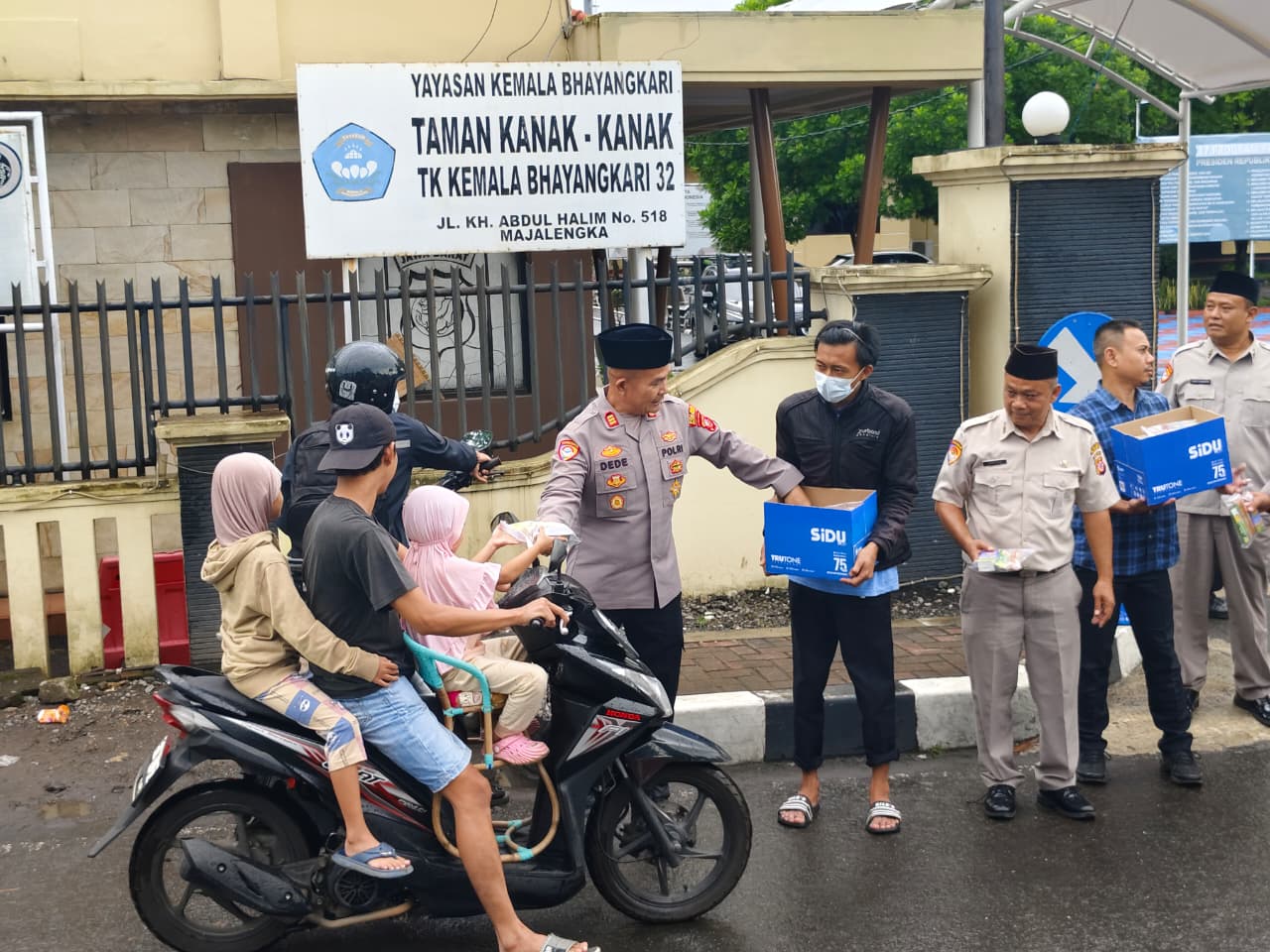 Majalengka – Dalam rangka mengisi kegiatan di bulan suci Ramadan dengan aksi sosial, Kabagren Polres Majalengka, AKP Dede Darmawan, S.H., M.H., bersama anggota dan Ibu Bhayangkari membagikan takjil kepada masyarakat yang tengah ngabuburit menjelang waktu berbuka puasa di depan Mako Polres Majalengka, Rabu sore (4/3/2026).