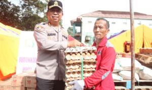 Polres Sukabumi turut menyalurkan bantuan sosial berupa beras, mie instan, minyak goreng, telur, serta vitamin bagi para penyintas bencana.