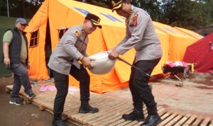 Dalam kegiatan tersebut, Kapolres didampingi Wakapolres Sukabumi Kompol Agus Susanto, S.H., M.M. serta para Pejabat Utama Polres Sukabumi untuk memastikan kondisi wilayah terdampak sekaligus memberikan bantuan kepada warga yang mengungsi.
