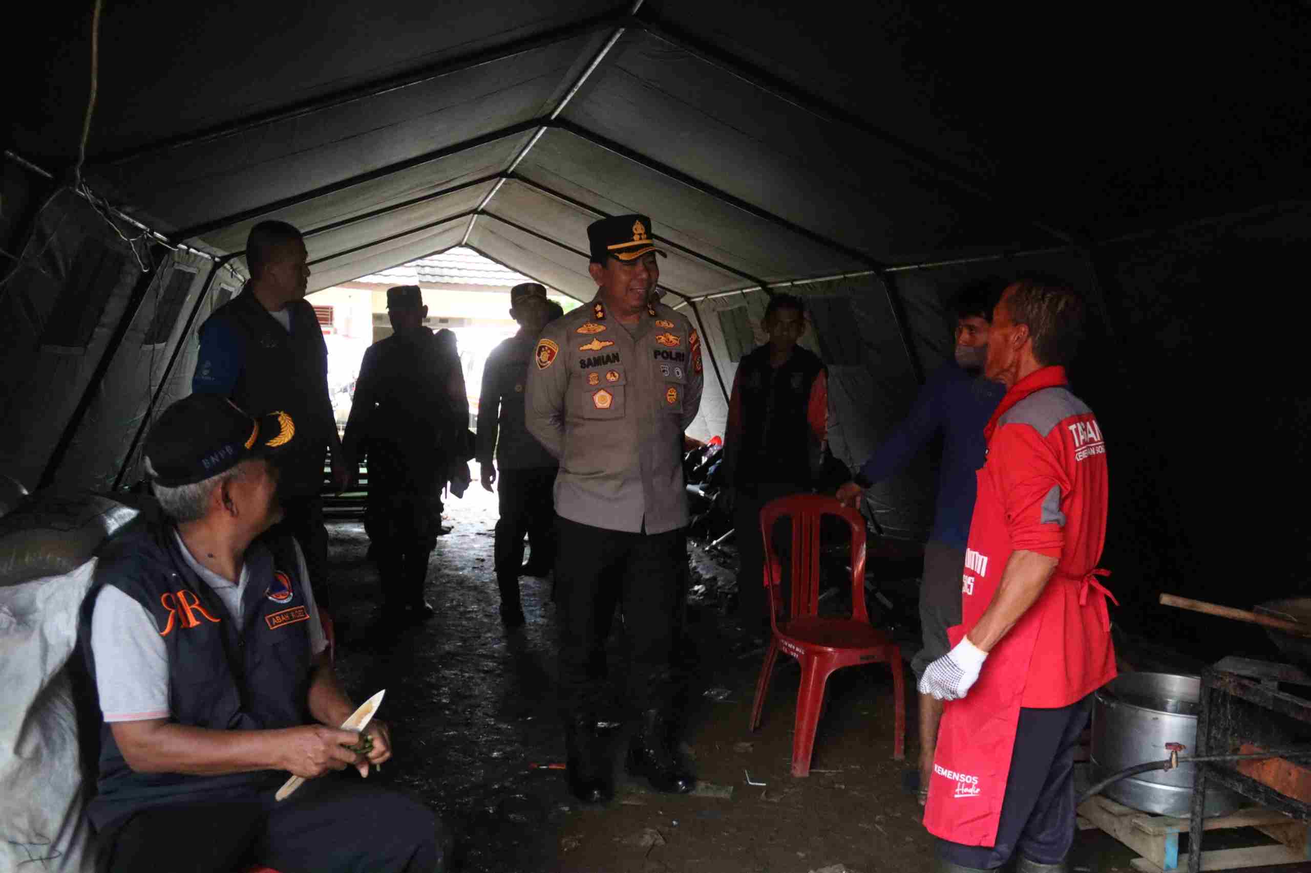 Dalam kesempatan tersebut, Kapolres Sukabumi bersama rombongan juga mengunjungi lokasi pengungsian yang berada di halaman SDN 1 Bantargadung untuk mengecek kondisi para pengungsi.
