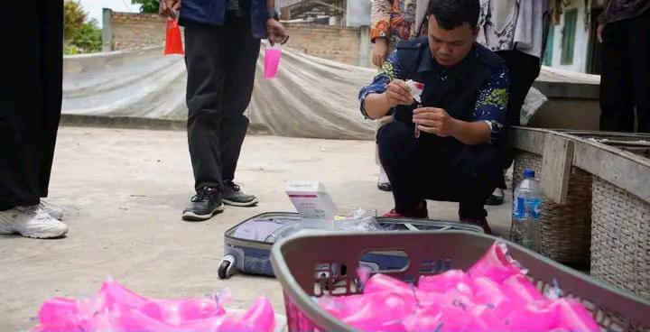 Di salah satu tempat produksi cendol, kami menemukan 182 bungkus cendol berwarna pink yang setelah diuji menggunakan rapid test kit terindikasi mengandung Rhodamin B,” jelasnya.