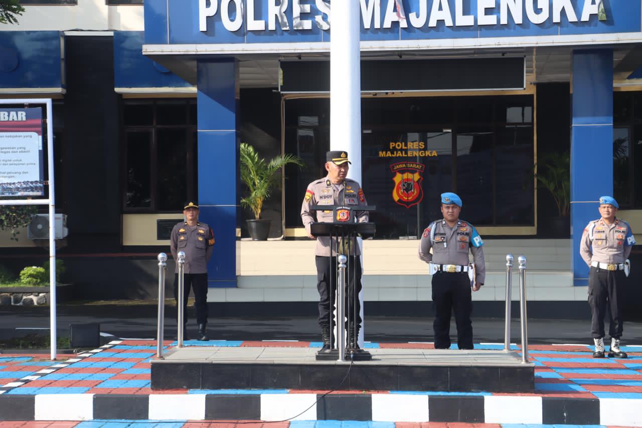 Majalengka – Kabaglog Polres Majalengka Kompol Endoy Sahru memimpin apel pagi yang diikuti oleh personel Polres Majalengka di halaman Mapolres Majalengka. Dalam arahannya, Kabaglog mengingatkan seluruh personel untuk selalu menjaga kesehatan dan kesiapan fisik menjelang pelaksanaan Operasi Ketupat Lodaya 2026, Selasa (10/03/2026).