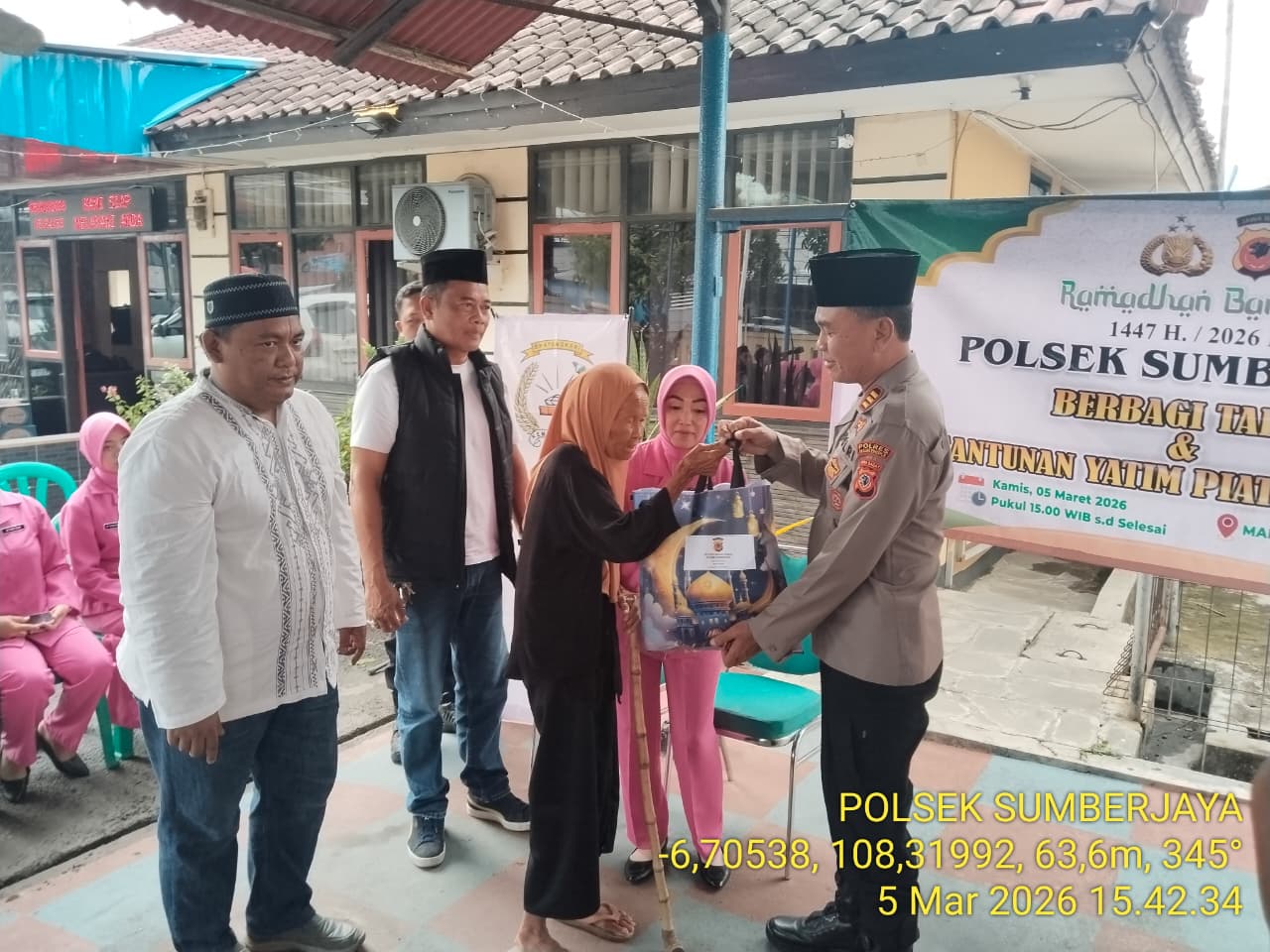 Majalengka – Dalam rangka mempererat tali silaturahmi serta meningkatkan kepedulian sosial di bulan suci Ramadhan, jajaran Polsek Sumberjaya Polres Majalengka menggelar kegiatan pembagian santunan atau tali asih kepada anak yatim piatu dan para jompo, yang dilanjutkan dengan buka puasa bersama. Kegiatan tersebut dilaksanakan pada Senin (09/03/2026) bertempat di Halaman Mako Polsek Sumberjaya, Jl. Raya Sumberjaya No.24 Desa Bongas Kulon, Kecamatan Sumberjaya, Kabupaten Majalengka.