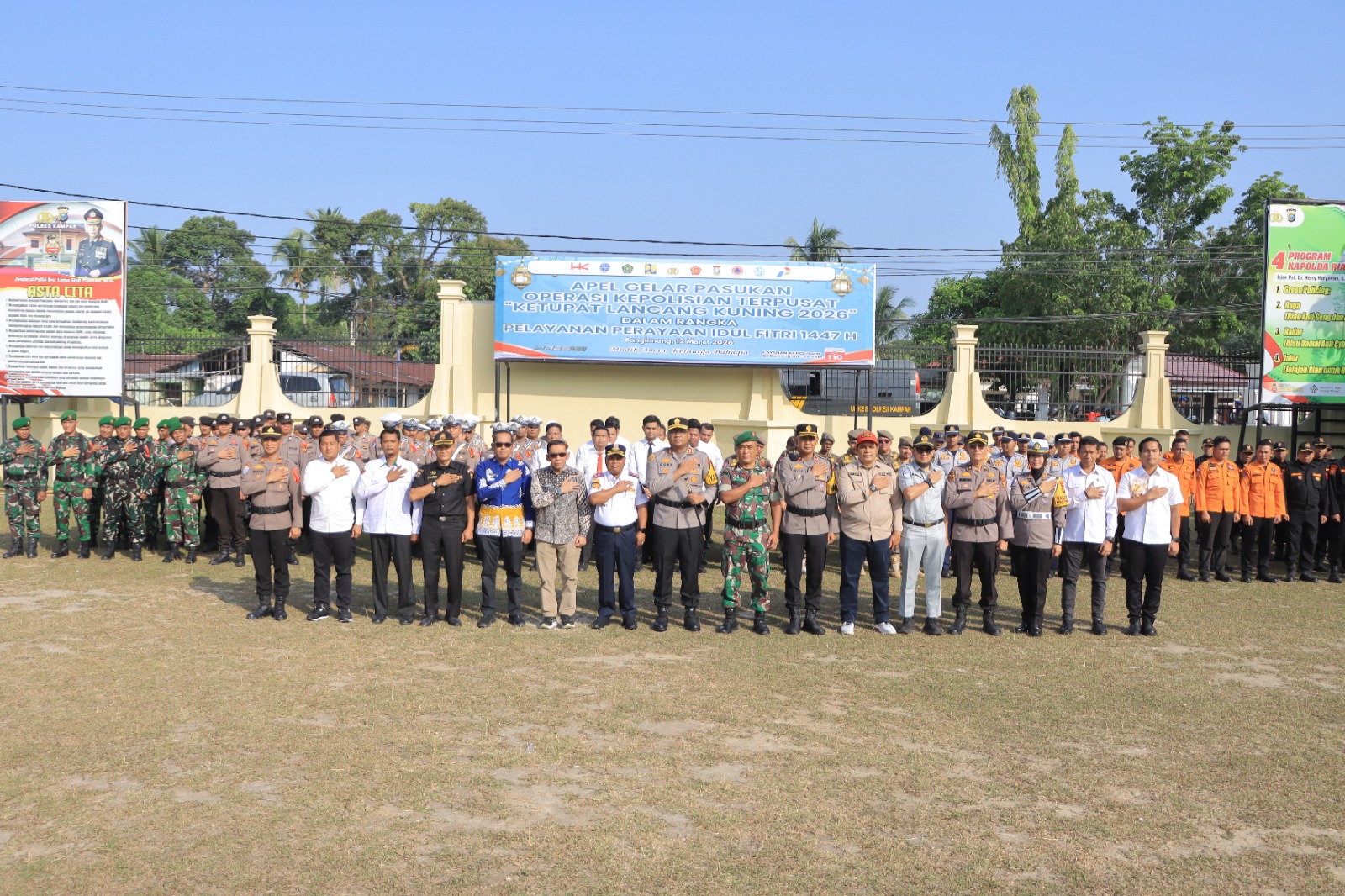 Bangkinang – Dalam rangka menyambut hari raya Idul Fitri 1447 H dan memastikan kelancaran serta keamanan jelang arus mudik Lebaran, Polres Kampar menggelar apel gelar pasukan Operasi Lancang Kuning Tahun 2026 yang dihelat secara serentak di seluruh Indonesia. Acara ini berlangsung di halaman Mapolres Kampar, Kamis (12/3/2026), dan dipimpin langsung oleh Kapolres AKBP Boby Putra Ramadhan S.