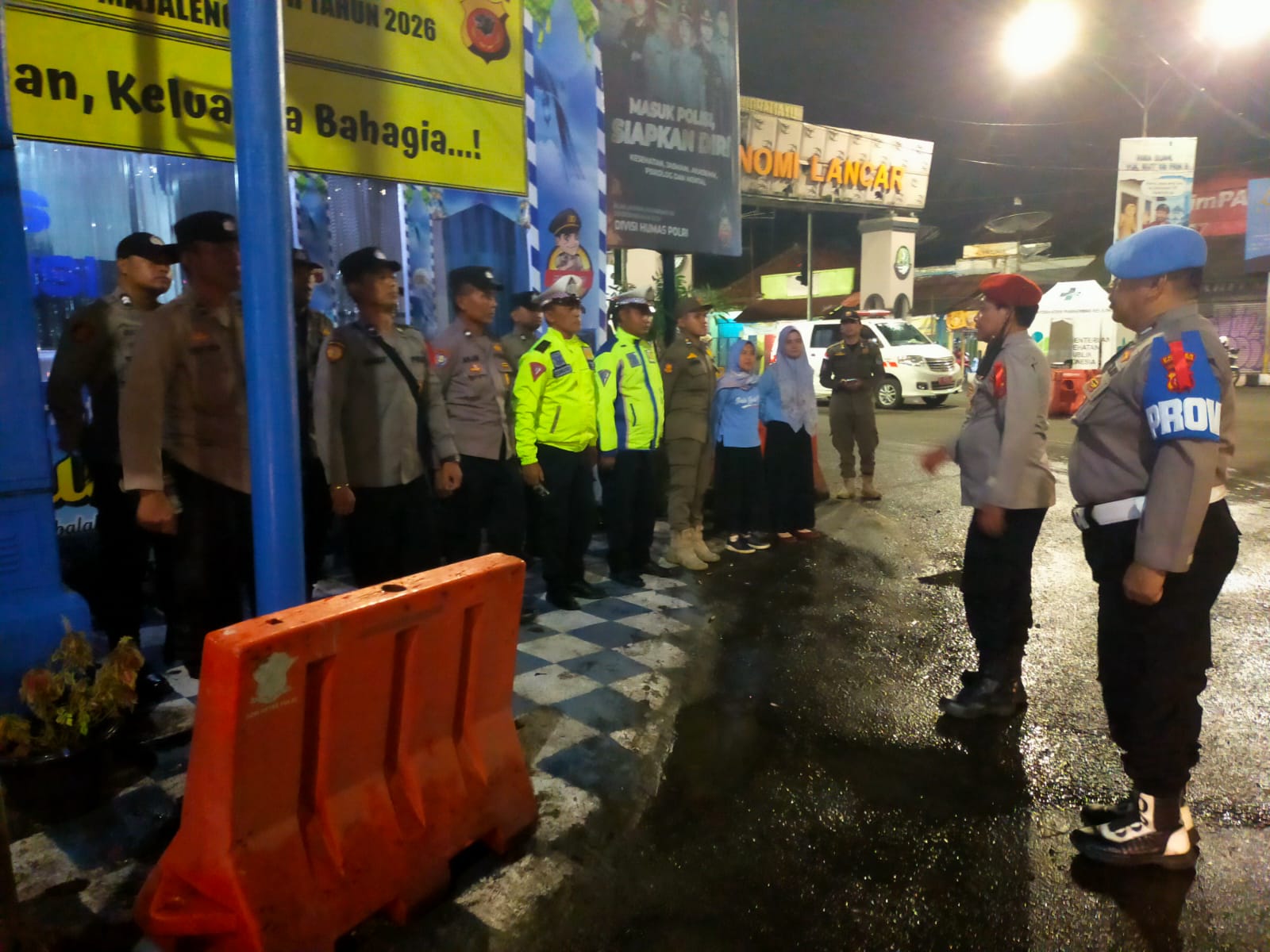 MAJALENGKA – Dalam rangka menjamin keamanan dan kenyamanan masyarakat selama masa mudik Lebaran, jajaran Polres Majalengka Polda Jabar melaksanakan apel malam rutin di Pos Pengamanan (Pos Pam) Terpadu Kadipaten. Kegiatan yang menjadi bagian dari Operasi Ketupat ini dipimpin oleh Kapolsek Kadipaten AKP Budi Wardana, S.Pd., selaku Ka Pos Pam, yang dalam kesempatan tersebut diwakili oleh Panit 1 Reskrim Polsek Kadipaten IPTU Brigmono Rudiantoro, S.H., selaku Padal 1 Pos Pam Kadipaten. Jum’at (13/03/2026) malam.