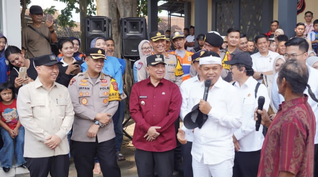 GARUT | Reformasiaktual.com – Menteri Perhubungan RI, Dudy Purwagandhi, bersama Gubernur Jawa Barat, Dedi Mulyadi, melakukan kunjungan kerja ke Kabupaten Garut dalam rangka meninjau kesiapan jalur mudik sekaligus menyerahkan Kompensasi Bantuan Gubernur kepada pengemudi kendaraan tidak bermotor. Kegiatan ini dipusatkan di Mapolres Garut, Jalan Jend. Sudirman, Kecamatan Karangpawitan, Kabupaten Garut, Sabtu (14/3/2026).