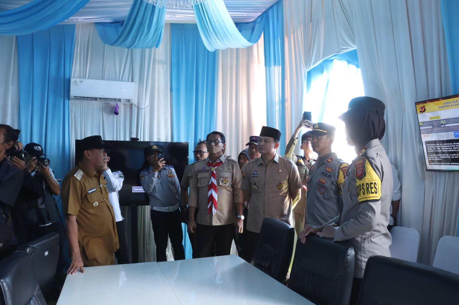Rombongan Forkopimda mengawali peninjauan di Pos Terpadu Alun-Alun Majalengka, yang disambut oleh Kapolsek Majalengka Kota Iptu Piki Krismanto, S.H., M.H. Di lokasi ini, tim mengecek kesiapan personel gabungan serta sarana pendukung pelayanan kesehatan dan informasi bagi masyarakat.