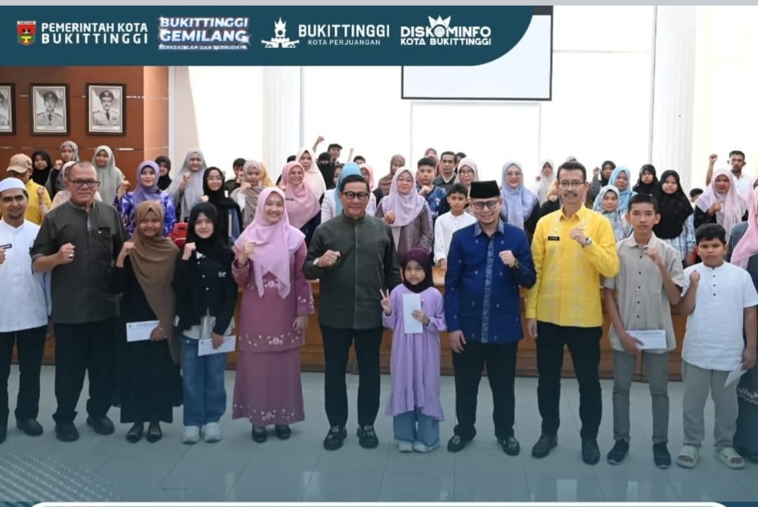 Wali Kota Bukittinggi, Ramlan Nurmatias, menyampaikan apresiasi kepada KORPRI Kota Bukittinggi yang secara konsisten melaksanakan kegiatan sosial melalui iuran para ASN. Bantuan kali ini diperuntukkan bagi anak-anak yatim piatu di lingkungan Pemerintah Kota Bukittinggi, untuk membantu memenuhi kebutuhan mereka jelang Hari Raya Idul Fitri.