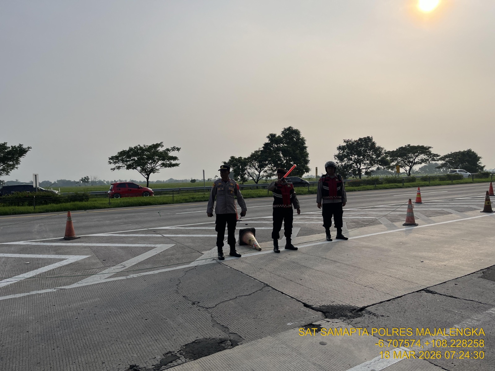 Majalengka, Memasuki H-7 Hari Raya Idulfitri 1447 H, intensitas kendaraan di jalur bebas hambatan Tol Cipali mulai menunjukkan peningkatan. Guna menjamin kelancaran dan keamanan para pemudik, jajaran Sat Samapta Polres Majalengka melaksanakan pemantauan arus dan patroli kewilayahan di sekitar Rest Area KM 164 pada Rabu pagi (18/3/2026).