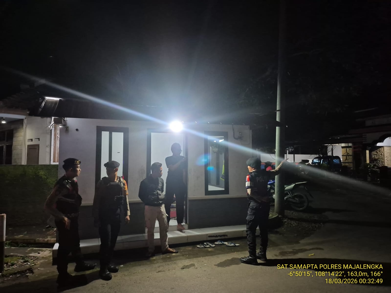Majalengka, Menjamin keamanan harta benda masyarakat yang ditinggal mudik Lebaran 1447 H menjadi atensi khusus jajaran Polres Majalengka. Pada Rabu dini hari (18/3/2026), Satgas Preventif Operasi Ketupat Lodaya 2026 melaksanakan patroli pengecekan ke sejumlah kawasan perumahan mulai pukul 00.00 WIB.