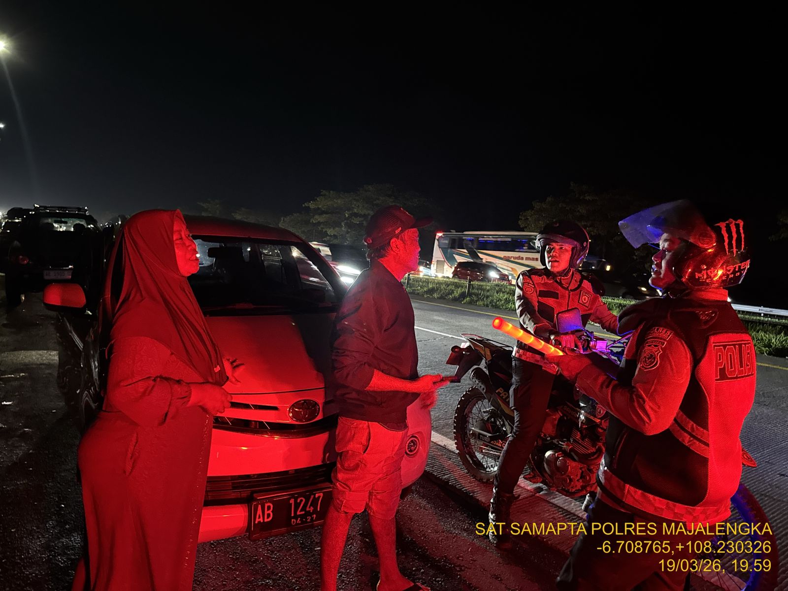 Dalam kegiatan pemantauan malam tersebut, petugas Sat Samapta juga memastikan kelancaran sirkulasi kendaraan yang hendak masuk menuju tempat istirahat. Patroli dialogis dilakukan untuk mengingatkan para pengendara agar selalu waspada dan mengecek kembali kondisi fisik serta kendaraan sebelum melanjutkan perjalanan jauh.