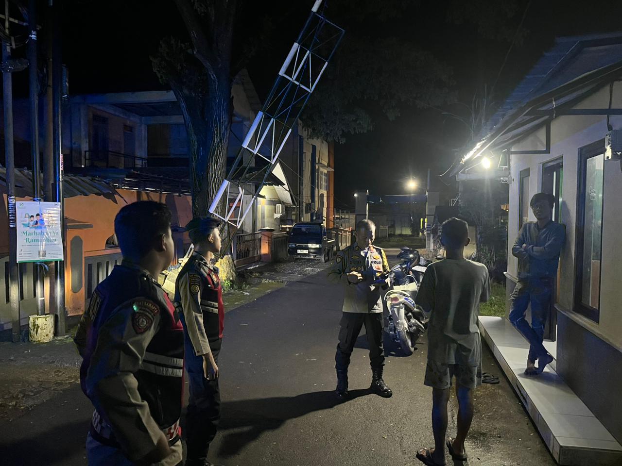 Tim patroli yang terdiri dari Bripda Syarif Tanu Rahmadi, Bripda Naufal Afif Gymnastiar, Bripda Mohammad Arifin, Bripda Raka Fathan Fahrana, dan Bripda Afif Naufal Ramdhani melakukan pemantauan intensif terhadap sisa-sisa aktivitas warga di jalanan.