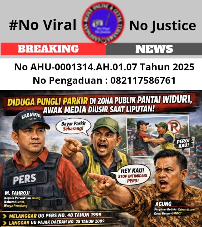 Pemalang – Dugaan praktik pungutan liar (pungli) parkir di area yang disebut sebagai zona publik mencuat di kawasan luar pagar objek wisata Pantai Widuri, Kabupaten Pemalang, Minggu (22/3/2026) sekitar pukul 10.43 WIB. Insiden ini menimpa awak media yang tengah menjalankan tugas jurnalistik saat melakukan peliputan di lokasi tersebut. Informasi ini diperoleh GMOCT Gabungan Media Online dan Cetak Ternama dari media online Kabarsbi.com yang tergabung di dalamnya.