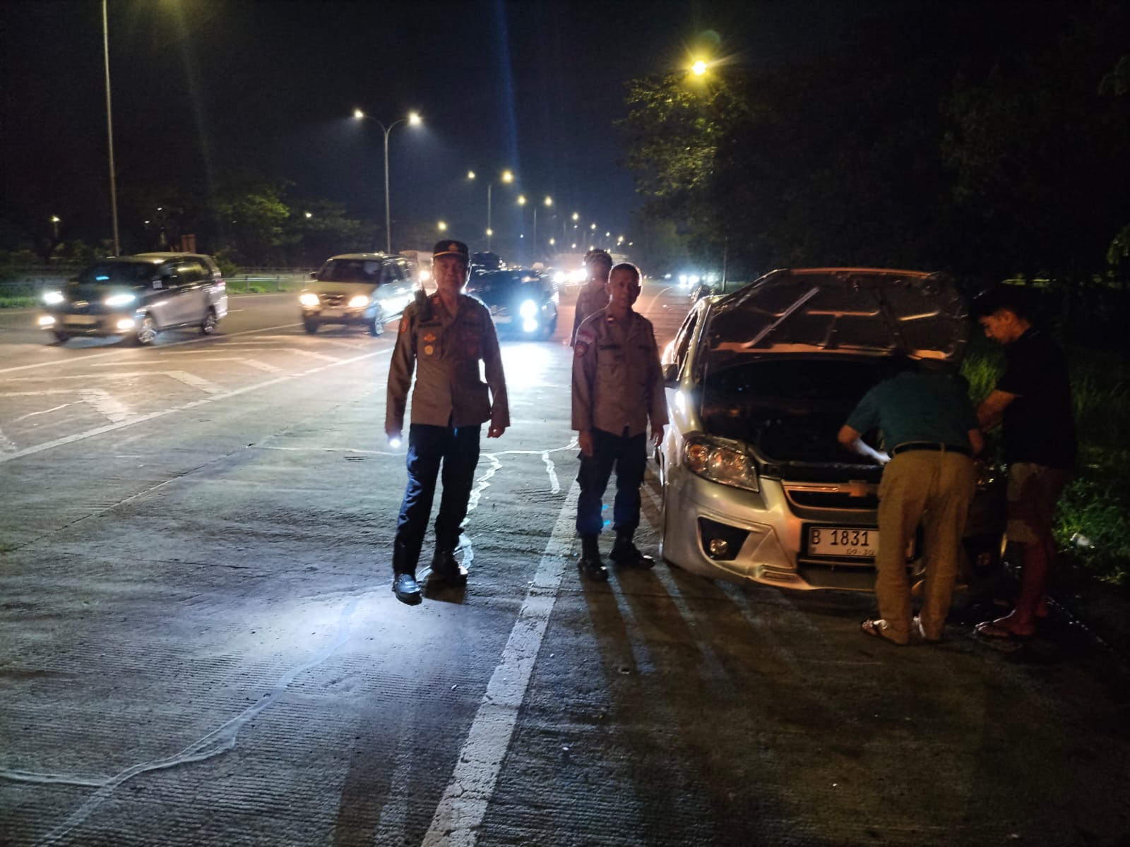 Dengan sigap, petugas langsung mendatangi lokasi kendaraan yang mogok untuk memberikan bantuan, mulai dari mengamankan posisi kendaraan hingga membantu proses evakuasi agar tidak mengganggu arus lalu lintas serta menjaga keselamatan pengemudi dan penumpang.
