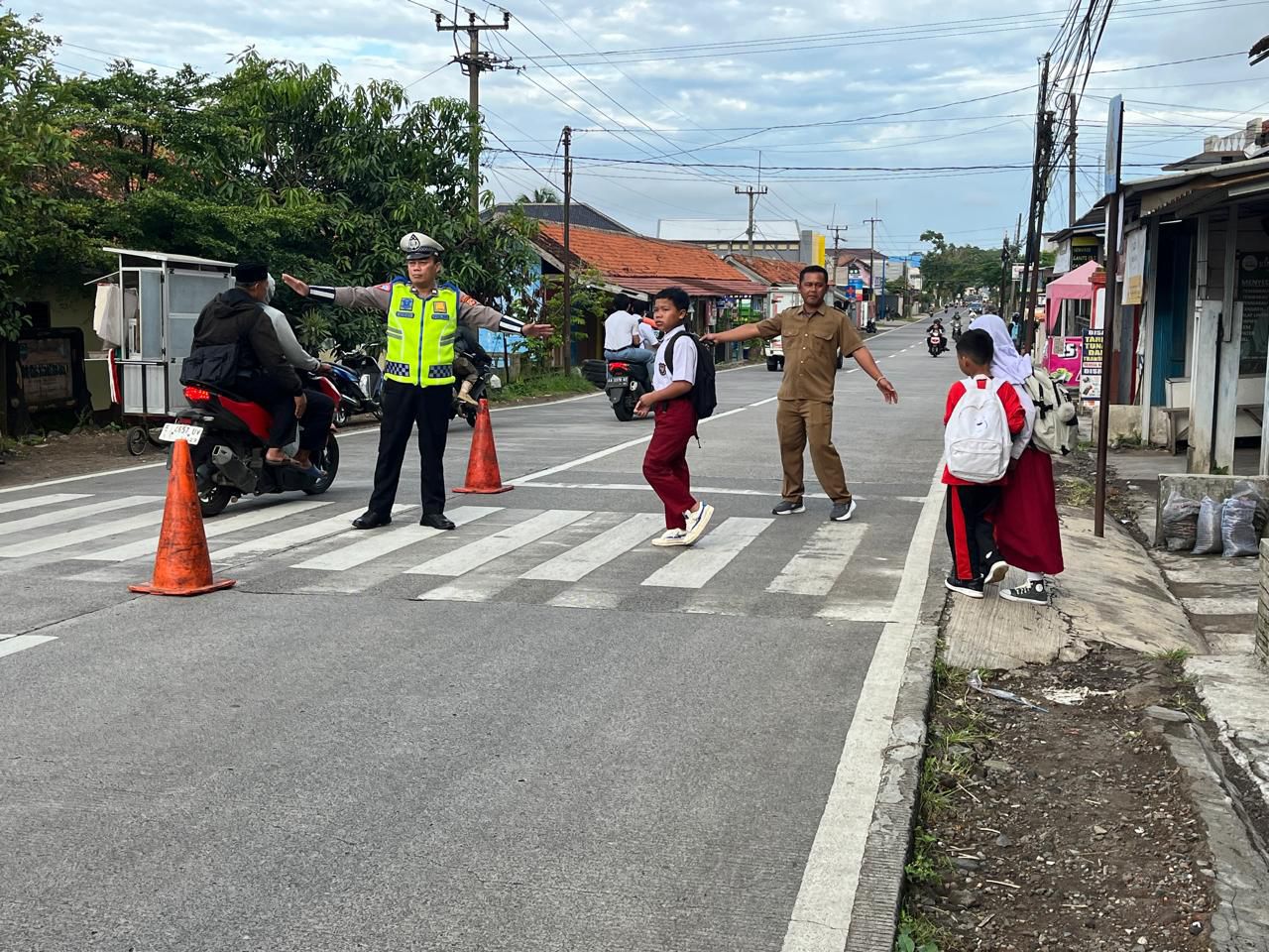 Majalengka – Polsek Cikijing Polres Majalengka Polda Jabar terus berupaya memastikan kelancaran arus lalu lintas serta meningkatkan keamanan dan keselamatan pengguna jalan. Ps. Panit Lantas Aiptu Ade Deni H. bersama Bripda Thoriq melaksanakan Protap Pelayanan Gatur Lalin di Jl. Raya Cikijing-Talaga tepatnya di SDN 1 Kasturi, Kecamatan Cikijing, Kamis (02/04/2026).