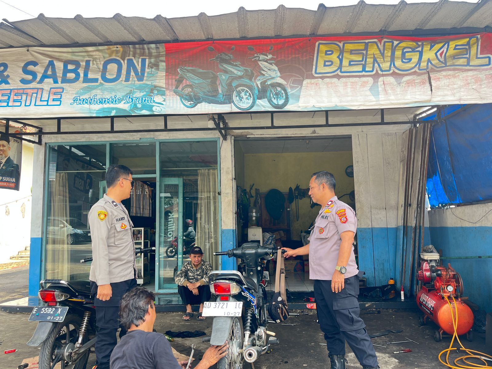 Jaga Sitkamtibmas Kondusif, Personil Polsek Cikijing Sambangi Bengkel Motor