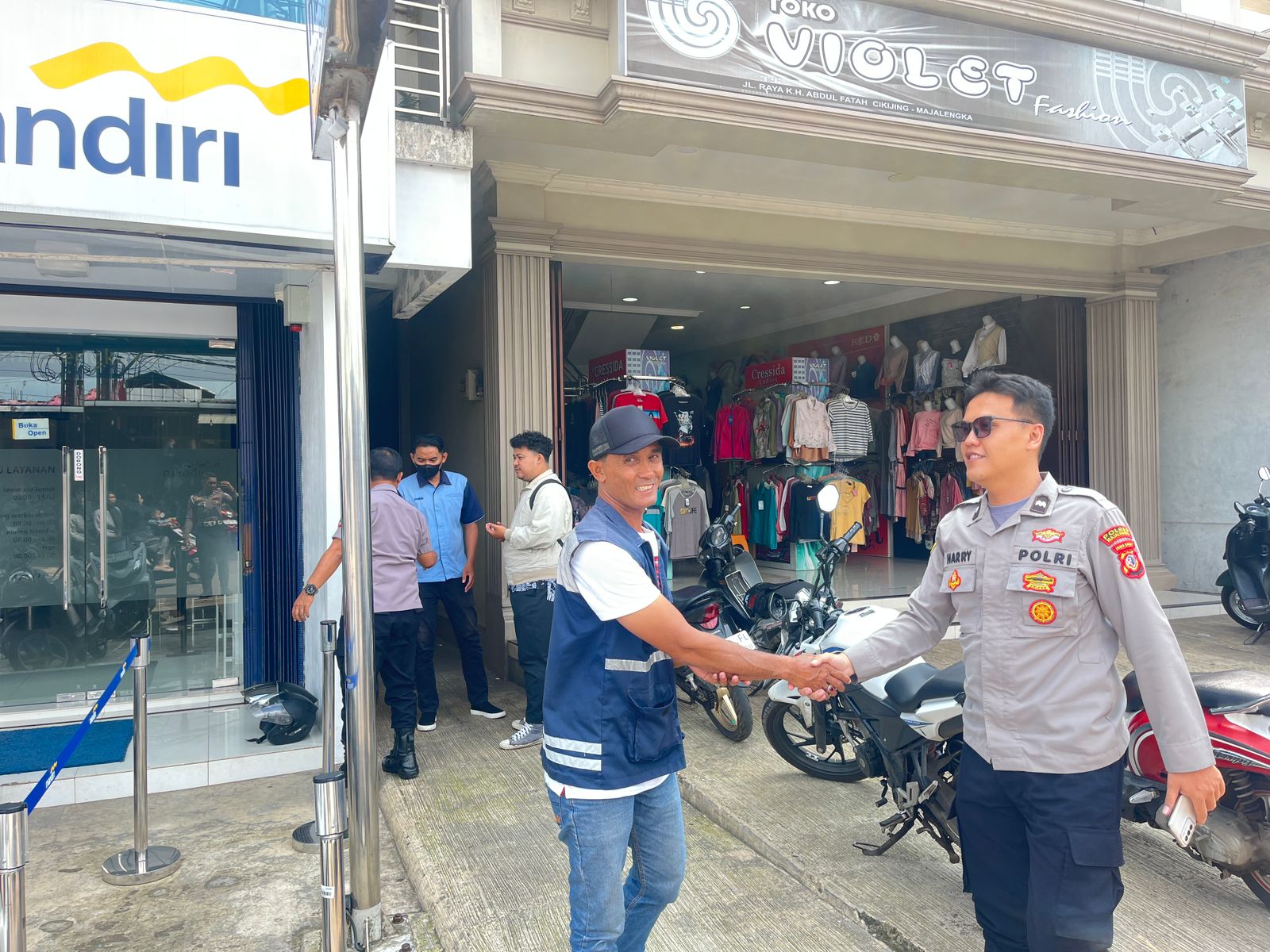 Majalengka – Polsek Cikijing Polres Majalengka Polda Jabar, melalui Ps. Panit Samapta I Aiptu Eman Subagja bersama Bhabinkamtibmas Aipda Harry melaksanakan patroli dialogis dan memberikan Binluh kepada petugas parkir di Halaman Bank Mandiri Cikijing guna menyampaikan imbauan kamtibmas dan antisipasi C3 (Curat, Curas, dan Curanmor), Kamis (02/04/2026).
