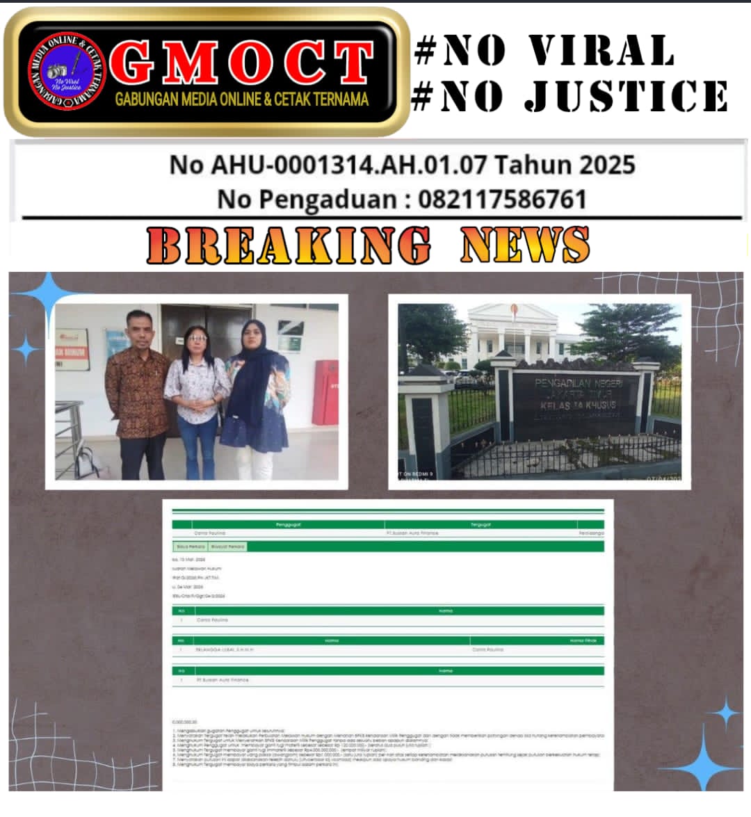 • Ganti Rugi Immateriil: Sebesar Rp4.000.000.000 (empat miliar rupiah), sebagai kompensasi atas tekanan psikologis dan terganggunya aktivitas usaha.
