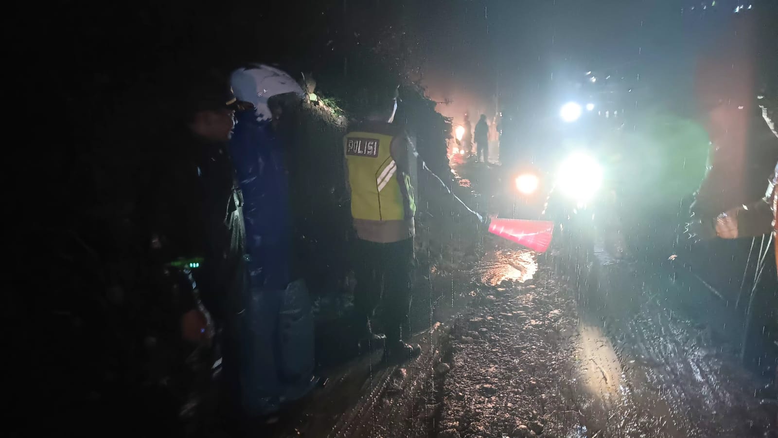 Petugas kepolisian bersama pihak terkait telah berada di lokasi untuk melakukan penanganan awal serta pengamanan di sekitar area longsor.