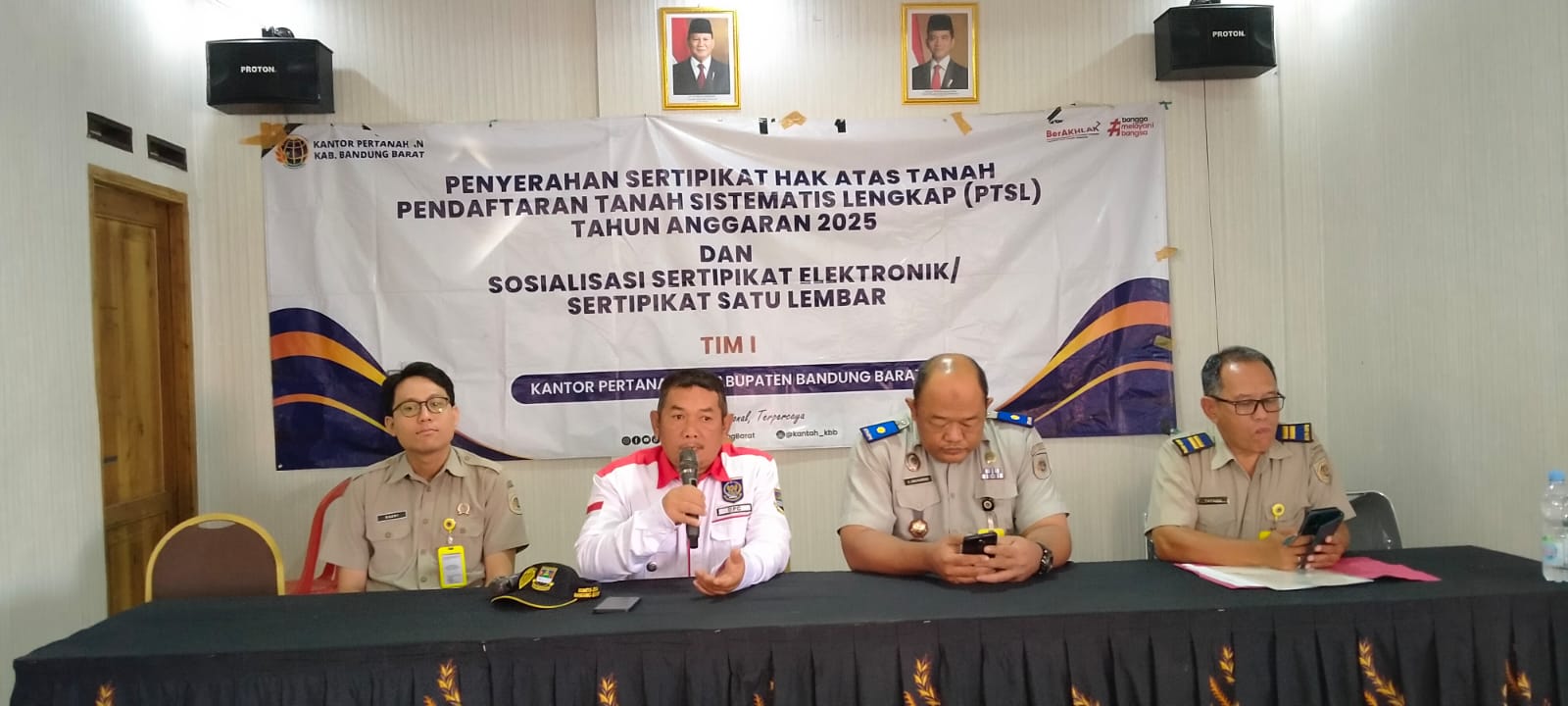 Perwakilan dari Kantor Pertanahan Kabupaten Bandung Barat, Selamet Joko Nugroho, Ketua Tim 1 PTSL, dalam sambutannya menyampaikan bahwa program PTSL tidak hanya memberikan legalitas atas tanah, tetapi juga menjadi sarana pemberdayaan masyarakat dalam aspek ekonomi.