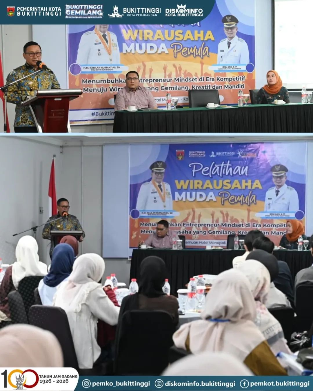 Reformasiaktual.com//Bukittinggi — Pemerintah Kota Bukittinggi gelar pelatihan wirausaha muda pemula. Kegiatan yang dibuka langsung Wali Kota Bukittinggi ini, dilaksanakan di Monopoli Hotel, Kamis, 16 April 2026.