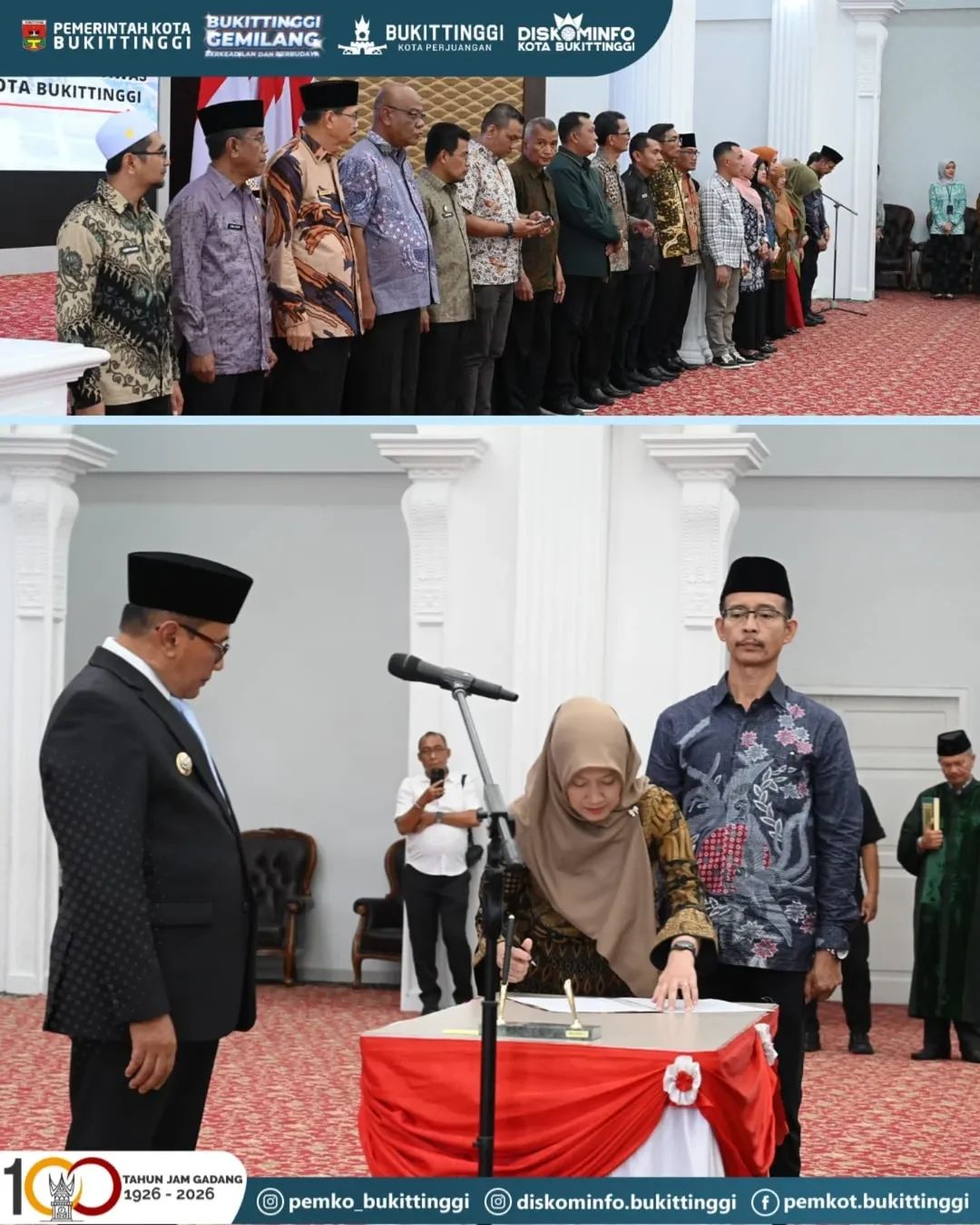 Reformasiaktual.com//Wali Kota Bukittinggi Ramlan Nurmatias, lantik 52 pejabat administator dan pengawas di lingkungan Pemerintah Kota Bukittinggi. Pelantikan berlangsung di Balairung rumah dinas wako, Kamis, 16 April 2025.