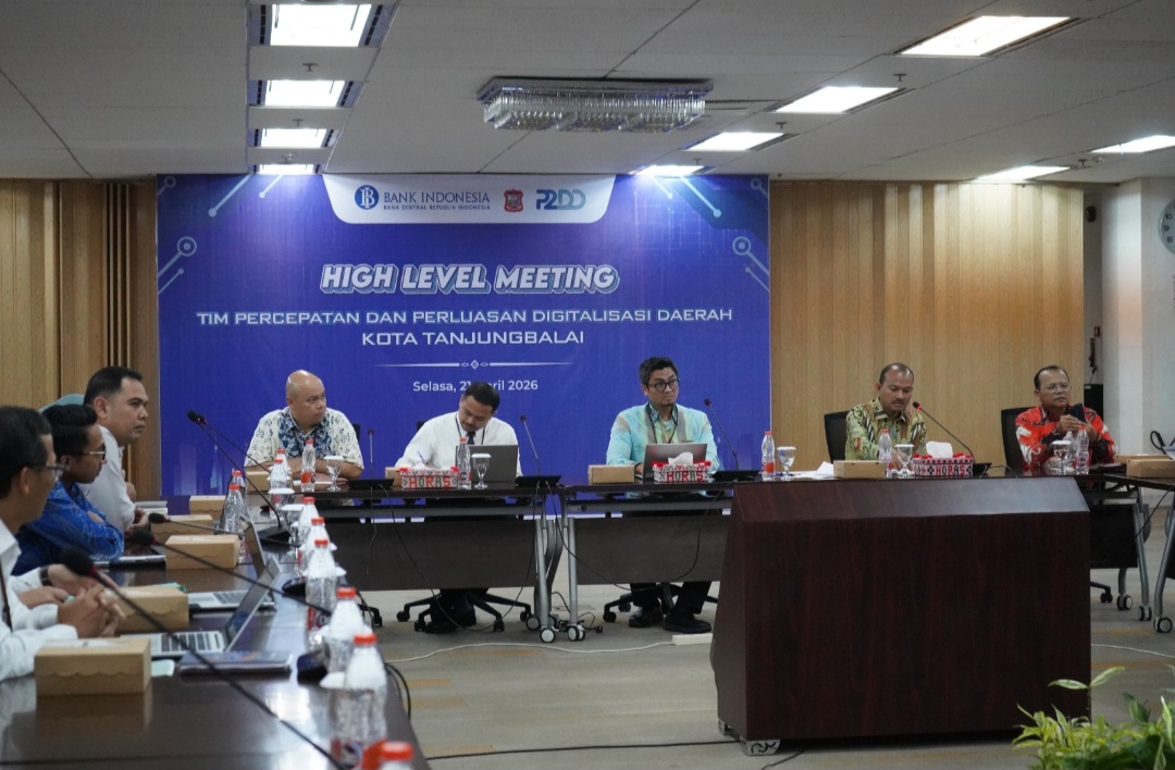 Pertemuan tersebut dihadiri dan dipimpin langsung Wali Kota Tanjungbalai Mahyaruddin Salim Batubara, SE., M.AP, serta dihadiri Kepala Bank Indonesia Pematang Siantar Ahmadi Rahman. Turut hadir pula Asisten Administrasi Umum, perwakilan Bank Sumut Pusat Medan, serta Kepala Kantor Bank Sumut Cabang Tanjungbalai. Selain itu, seluruh Kepala Organisasi Perangkat Daerah (OPD) pengampu pajak dan retribusi daerah ikut ambil bagian aktif dalam diskusi, menunjukkan keseriusan pemerintah daerah dalam memperkuat implementasi transaksi non-tunai di seluruh lini pelayanan publik, bertempat di di Ruang Rapat Lantai 4 Kantor Perwakilan Bank Indonesia (KPw) BI Pematang Siantar, Jalan H Adam Malik, Selasa (21/4/2026)