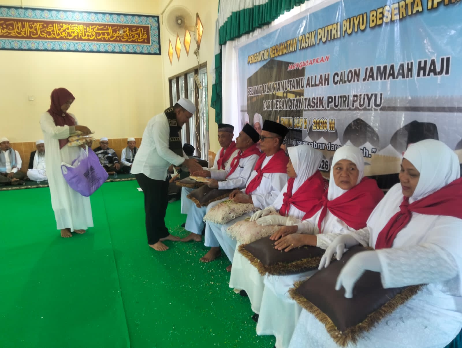 Bandul 6 Calon jemaah Haji 3 laki laki 3 perempuandari kecamatan Tasik Putri Puyu melaksanakan pelepasan 25 April 2026 di Aula masjid Assho Birin Bandul melalui Camat Tasik Putri Puyu ZAENAL S,E .