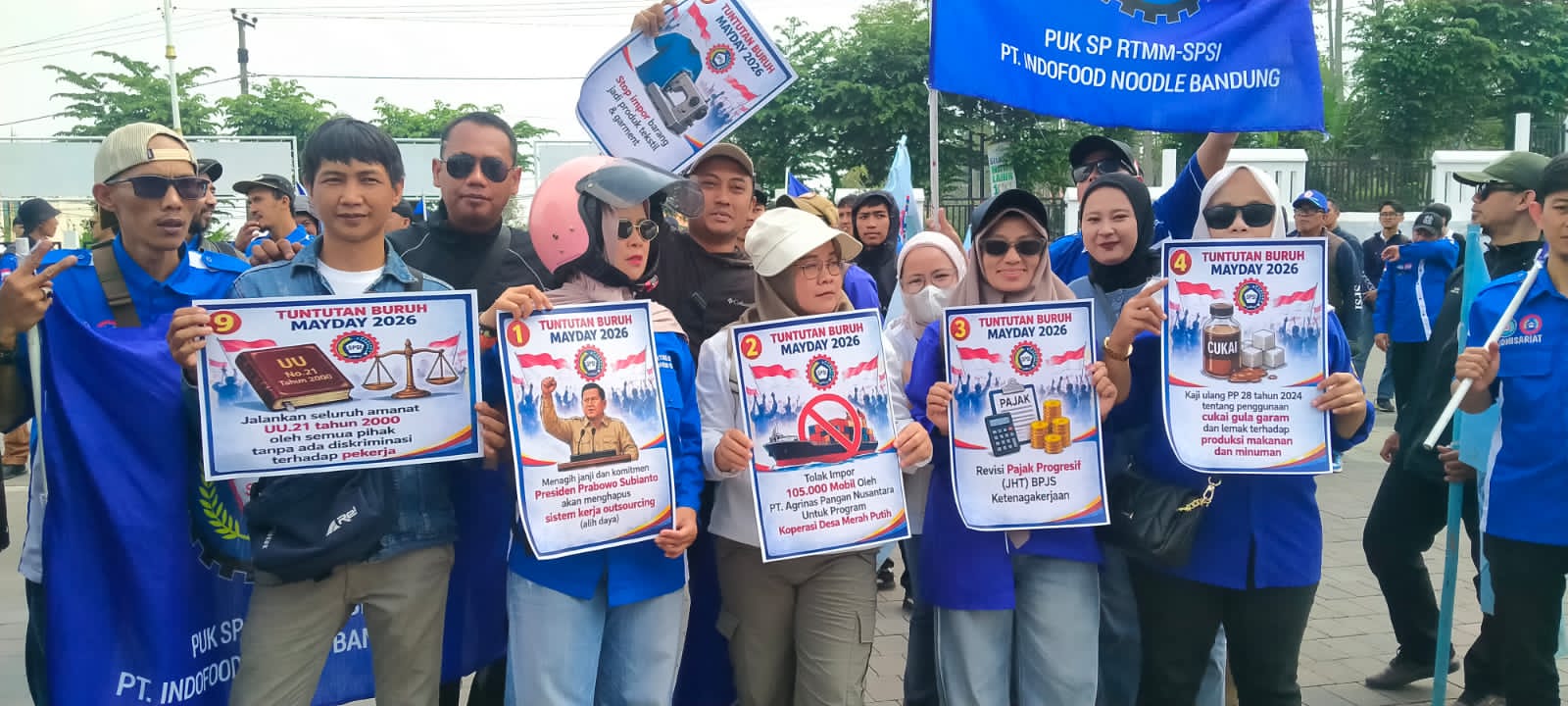 Diataanya tuntutan yang disampaikan antara lain menagih komitmen Presiden untuk menghapus sistem kerja outsourcing (alih daya), menolak rencana impor 105.000 unit mobil oleh PT Agrinas Pangan Nusantara untuk program Koperasi Desa Merah Putih, serta mendesak revisi kebijakan pajak progresif Jaminan Hari Tua (JHT).
