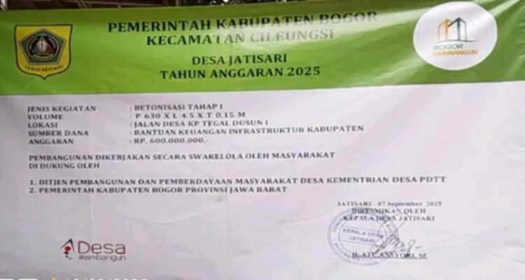 Bogor, Reformasiaktual.com – Proyek pembangunan infrastruktur jalan desa di wilayah Pemerintah Desa