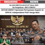 KETUM GMOCT Apresiasi Pernyataan Kapolri di DPR RI: Independensi Polri Harga MatiLembaga|29 Januari 202629 Januari 2026oleh adminSemarang, Rabu (28 Januari 2026) – Ketua Umum Gabungan Media Online dan