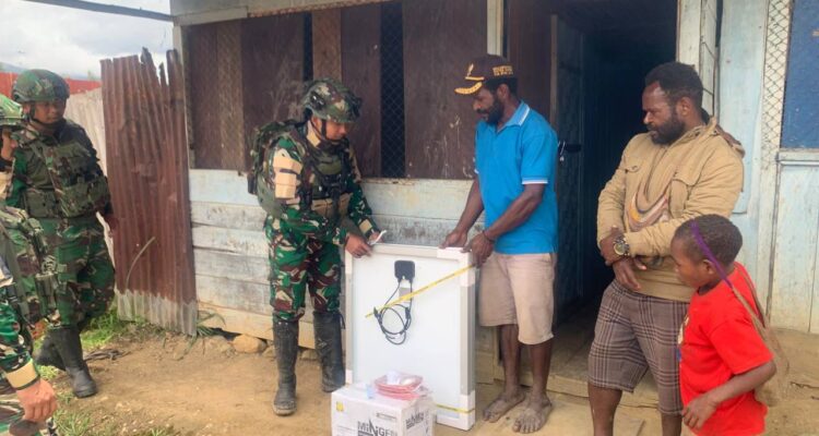 Jaya Sakti Terang, Personil TK Pogapa Berikan dan Memasang SolarcellTNI/Polri|6 November 20256 November 2025oleh adminIntan Jaya – Papua Tengah.Satgas Pamtas RI PNG Mobile Yonif 113/JS memberikan