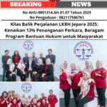 Kilas Balik Perjalanan LKBH Jepara 2025: Kenaikan 13% Penanganan Perkara, Beragam Program Bantuan Hukum untuk MasyarakatLembaga|23 Desember 202523 Desember 2025oleh adminJEPARA, 22 Desember 2025 (GMOCT) – Lembaga Bantuan Hukum (LKBH) Jepara yang