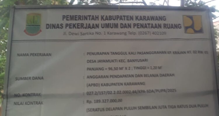 Karawang –Proyek penurapan tanggul Kali Pasanggrahan di Kampung Krajan, RT 02/RW 01,