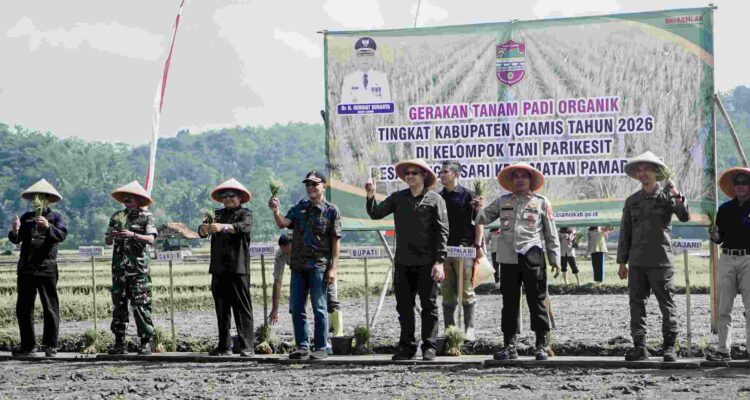 Reformasiaktual.com//CIAMIS,- Bupati Ciamis, Herdiat Sunarya secara resmi membuka Gerakan Tanam Padi Organik