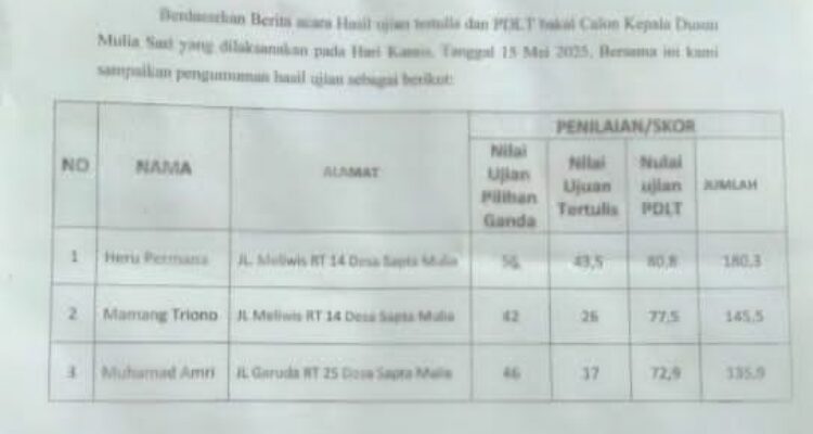 Pengangkatan Perangkat Desa Sapta Mulya Memantik Polemik WargaDaerah|12 Oktober 202512 Oktober 2025oleh adminRimbo Bujang – Penjaringan perangkat desa yang dilakukan beberapa bulan yang lalu