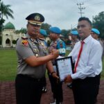 Sarolangun -Kepolisian Resor (Polres) Sarolangun menggelar upacara pemberian penghargaan serta penyerahan tanda